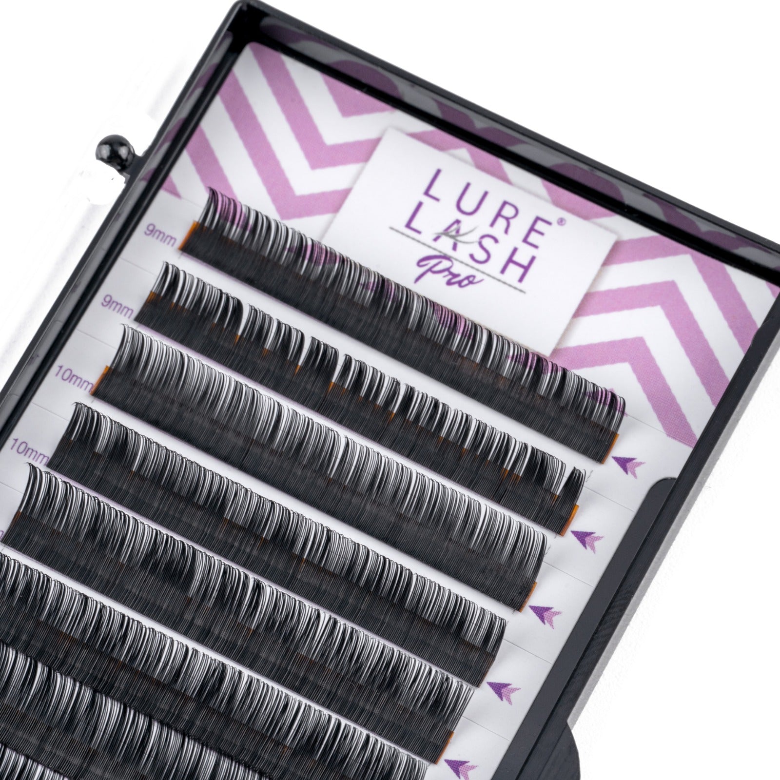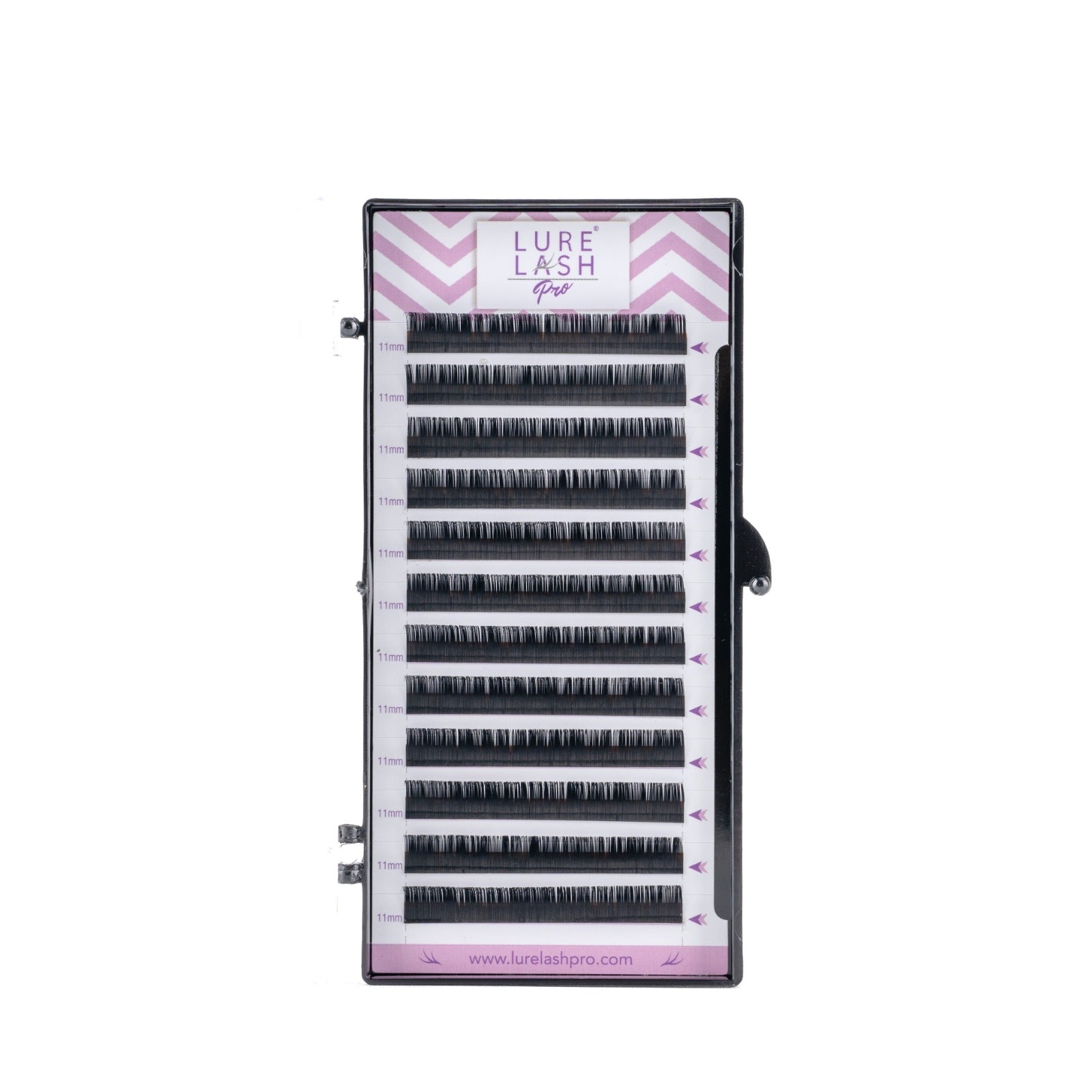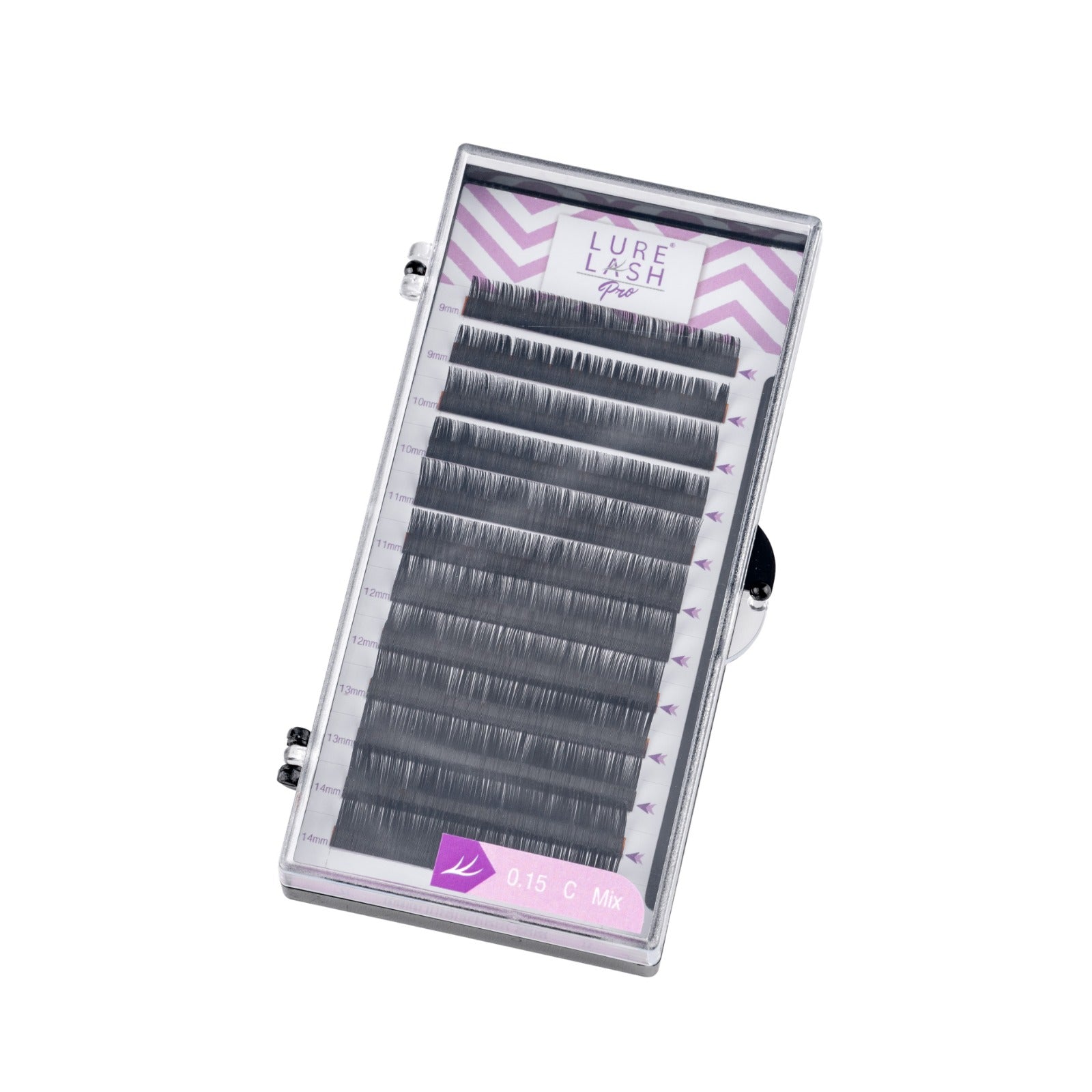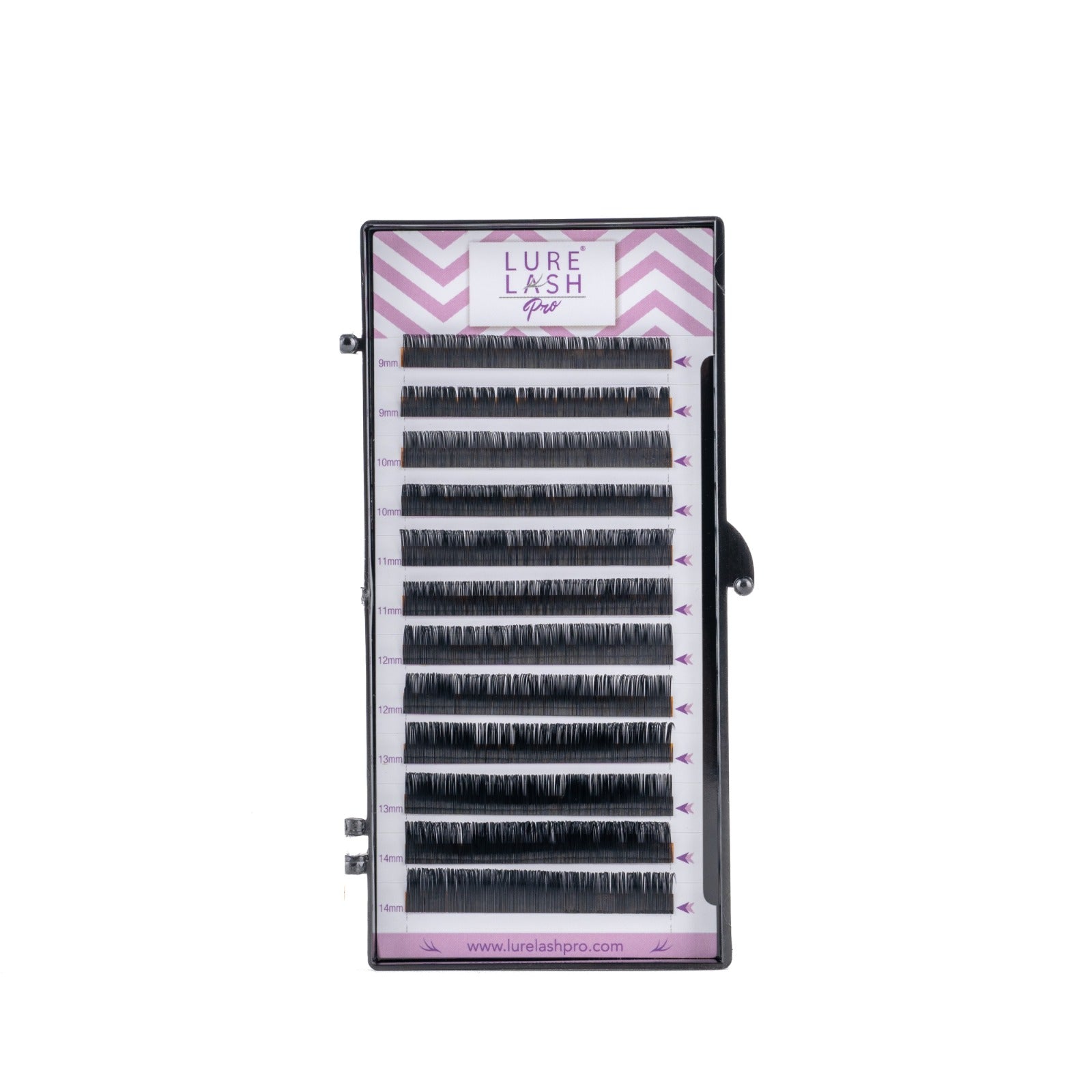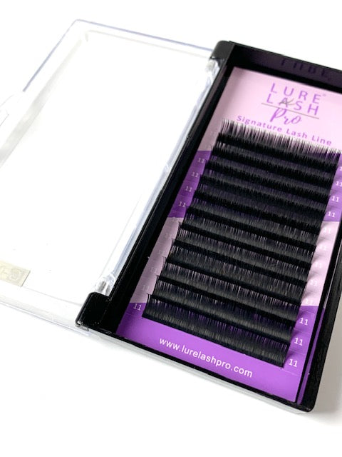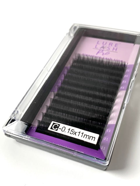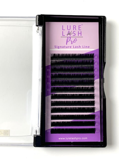 Lure Lash Pro classic eyelash extensions are one of the softest, darkest, most durable lashes available. The 0.15 lash diameter is perfect for almost every client for that everyday classic design and will give your client a dramatic curl effect without being too dramatic. These lashes are a great addition to any lash artist's kit.