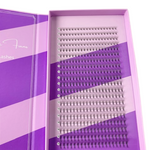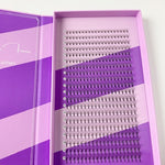 This Ultra Mega Box from Lure Lash Pro has 400 premade high quality fans. Each row is handmade and each fan is heat bonded. The lashes are placed on the row for easy lift without damaging the fan.