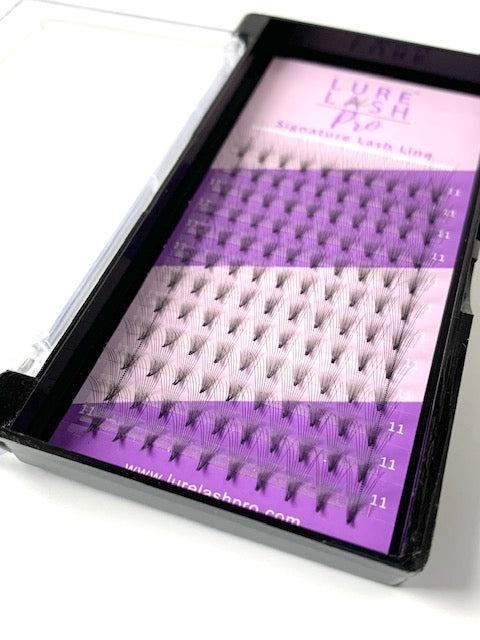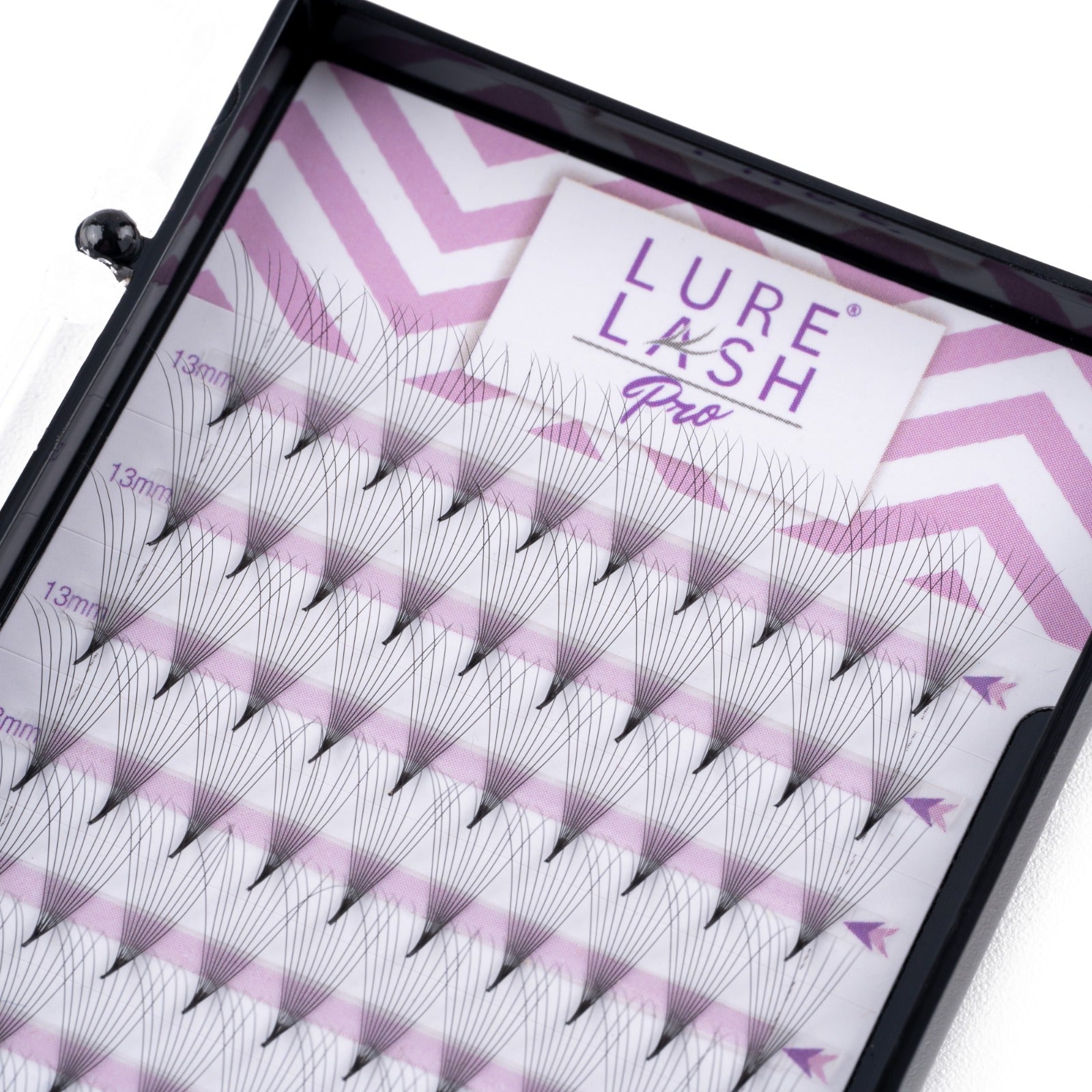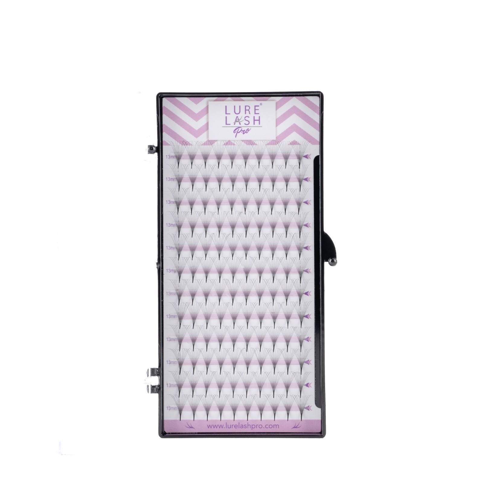 Lure Lash Pro Pre-made fans are not your average pre-mades. The base was created to mimic hand made fans which wrap around the natural lash. This new revolutionary high quality product was designed to be used by classic and volume trained stylists.