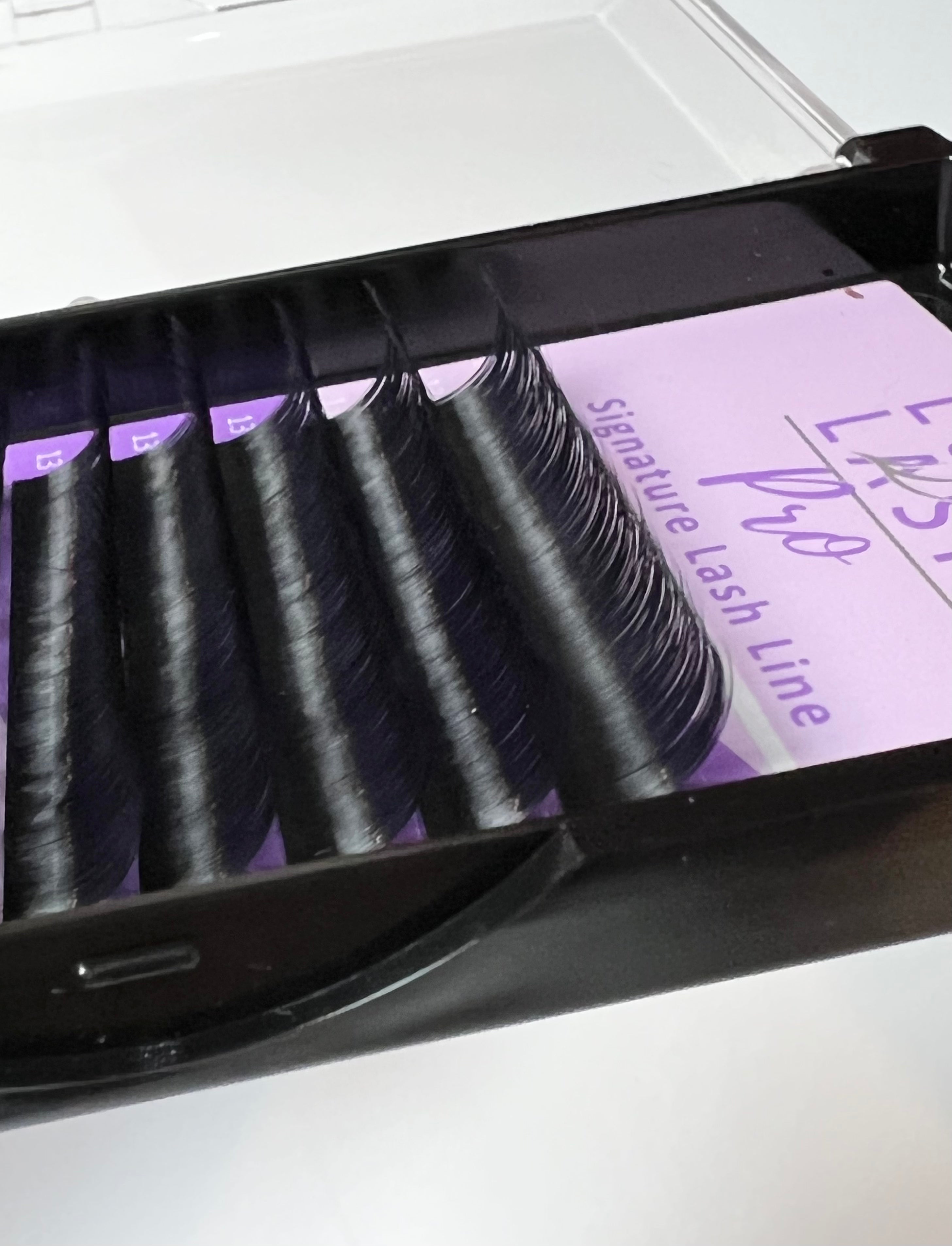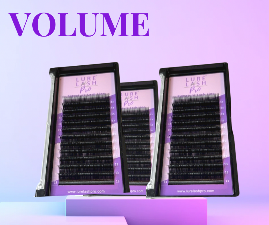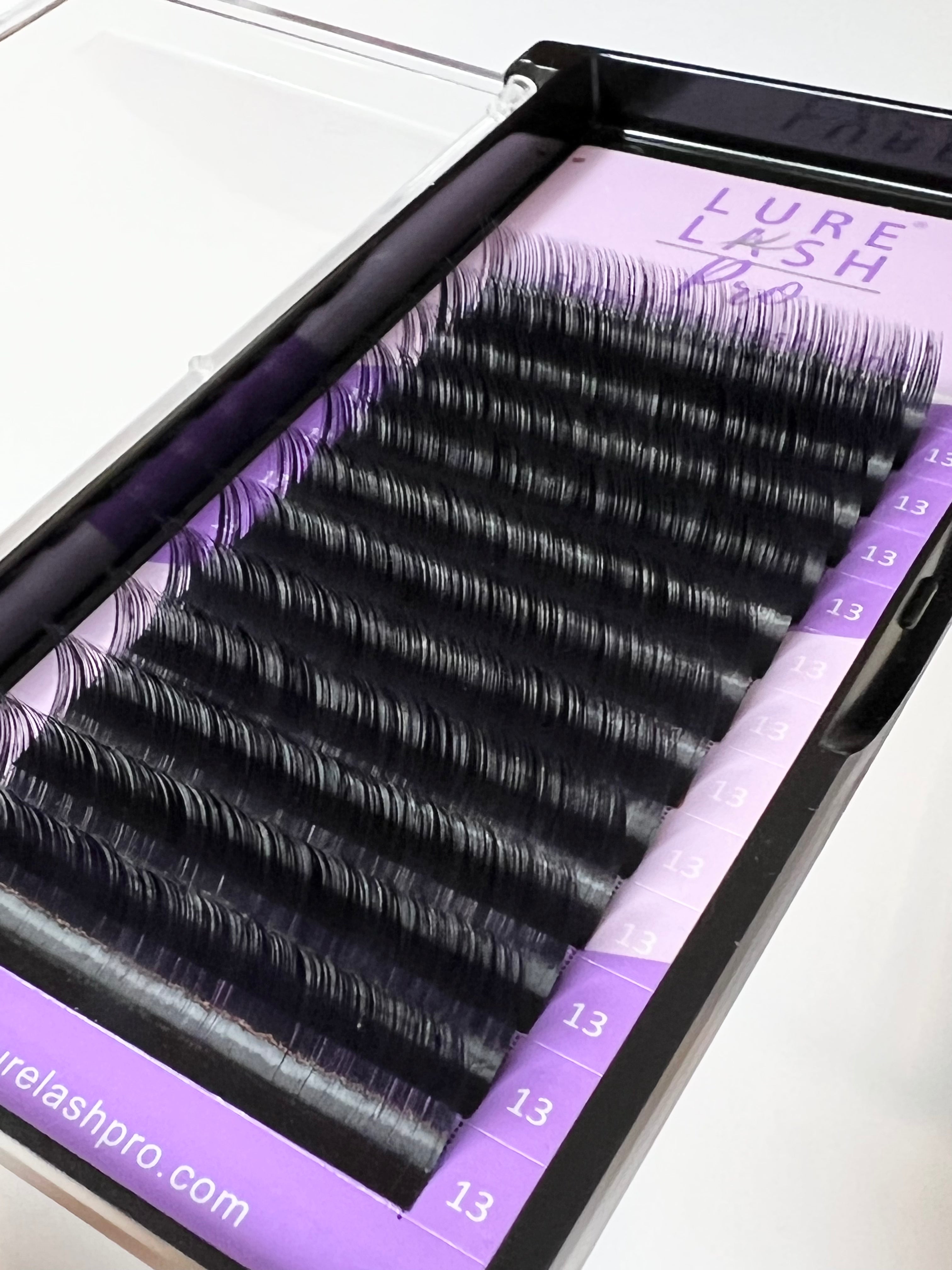 Lure Lash Pro Volume collection. D Curl .03 is for dimension and dramatic curl. The .03 collection can help you create thick velvety fans. The most versatile curl goes great on almost every eye shape! Creating volume fans by hand is the ultimate way to achieve that rich and dark look your clients love!