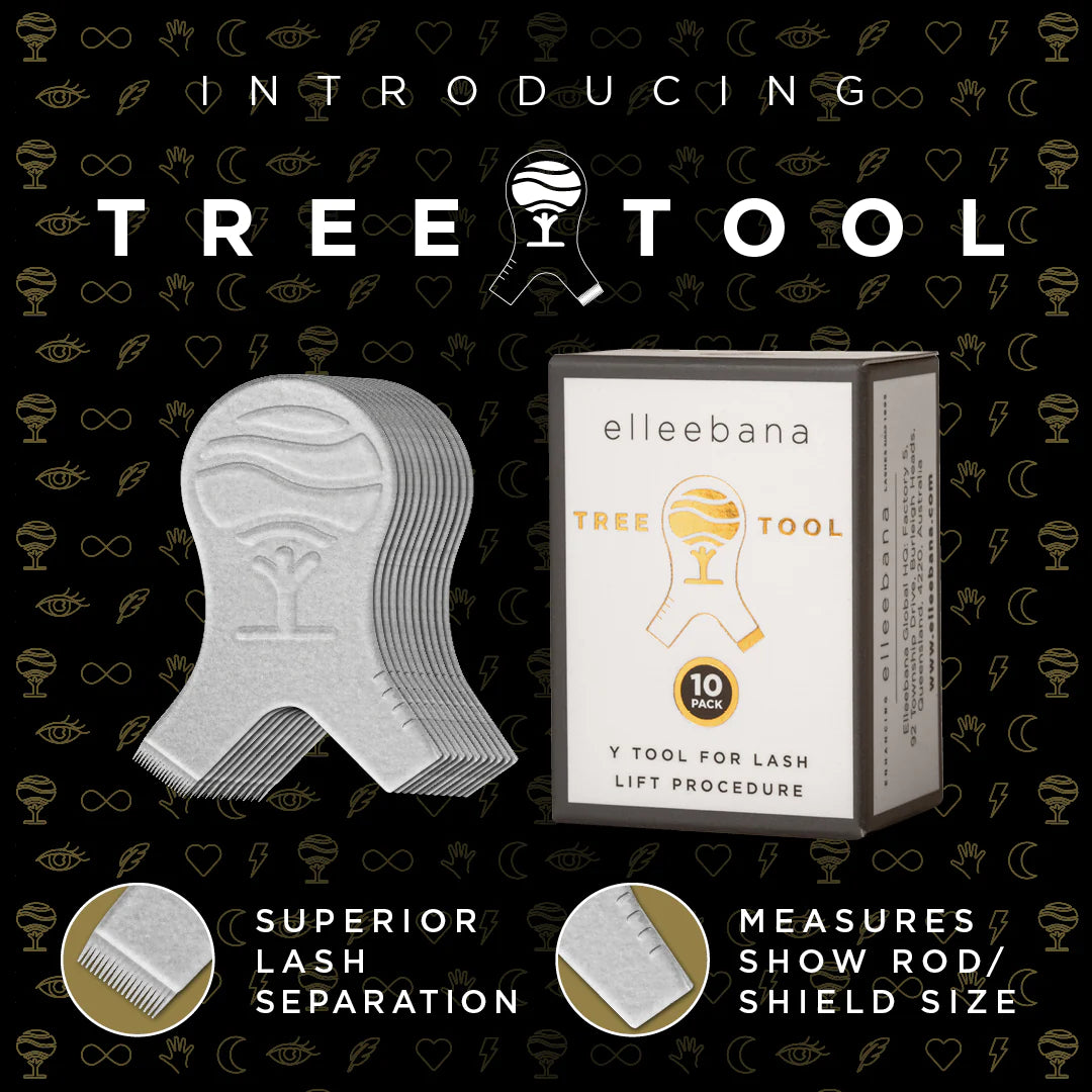 The design of the tool of course features our Globally recognized Elleebana Tree to give these tools a true point of difference and support to the stylists grip for practicality and comfort.  The quality of the material production is firm and without extensive flex but offers longer and a more defined comb to increase accuracy and evenly spaced definition to provide a neat and flawless lift.  The attention to the comb precision was a key component of this production, however so too was the unique measuring tool that helps take the guess work out of lifting while cutting down on application time.  You will find the measuring markers on one arm of the Tree Tool indicate lash length and suitability/compatibility to a particular rod or shield size.  #yourewelcome